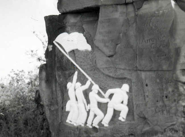 This is the site where the infamous Iwo Jima flag was risin during World War II. Harlon Block, Ira Hayes, John Bradley, Franklin Sousley, Michael Strank, and Rene Gagnon were the men that raised the flag.